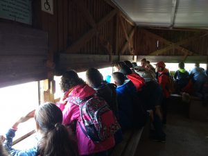 A primera hora del matí vam sortir caminant cap a la pista forestal d’uns 2,5 km que ens apropava al nostre destí. La veritat és que ha estat molt emocionant realitzar les diferents postes d’una gimcana i poder divertir-nos amb els nostres companys i companyes de 6è.