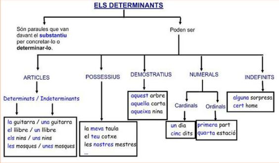 A continuació, us deixo un petit esquema on podeu veure tots els tipus de determinants que existeixen i que heu de conèixer.