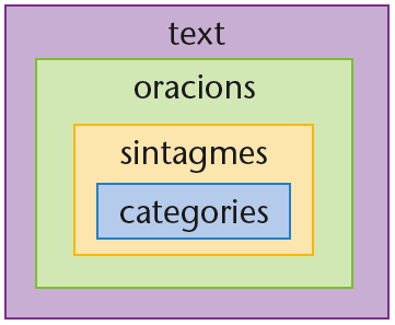 Les paraules es junten en grupets al voltant d’un nucli (paraula més important dintre del grup) per juntar-se amb altres grupets de paraules i conformar una oració. Aquests grups o agrupacions de paraules els coneixem com a sintagmes.