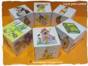Hoy os proponemos que construyáis dos dados. Si no tenéis impresora, de cada dibujo que sale en el dado, haced una frase. Con el primero, se trata de ir lanzando y a medida que os aparezcan las distintas imágenes ir escribiendo una frase de cada una de ellas. Al final, debe quedar una pequeña historieta.