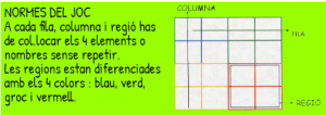– Comprensió de les normes d’un joc. – La resolució de SUDOKUS. – La resolució de TANGRAM -La suma. – La suma portant. El concepte de desena i unitat. -La resta.