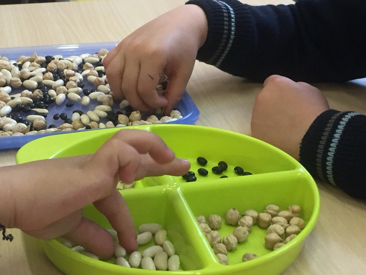 Hem començat amb les estacions de psicomotricitat fina. Treballem la precisió manual amb diferents materials del nostre entorn (pinces, pasta, pinyes, cereals…)
