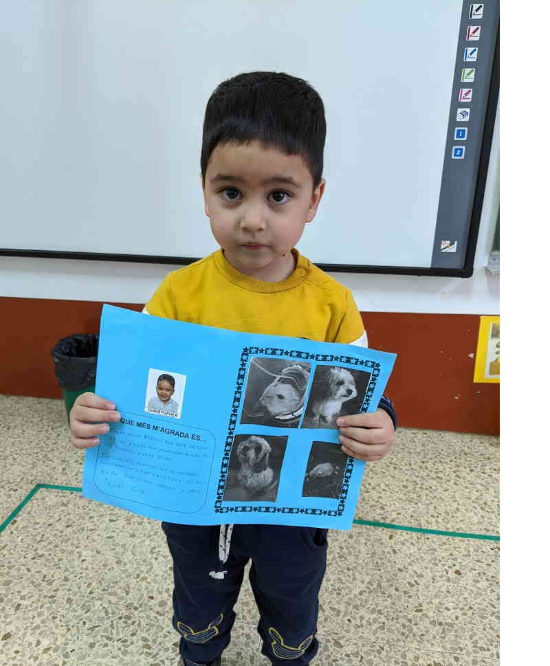 Al Christopher li agraden molt els animals i en concret dues mascotes que estan a casa dels avis. Un és un gosset i l’altre un hàmster. Ell juga amb ells i li agrada cuidar-los. Ens ho ha explicat sense massa problemes i molt seriós com ell parla sempre, perquè avui tocava explicar una cosa important. Ens ha agradat molt veure les fotos de les seves mascotes.