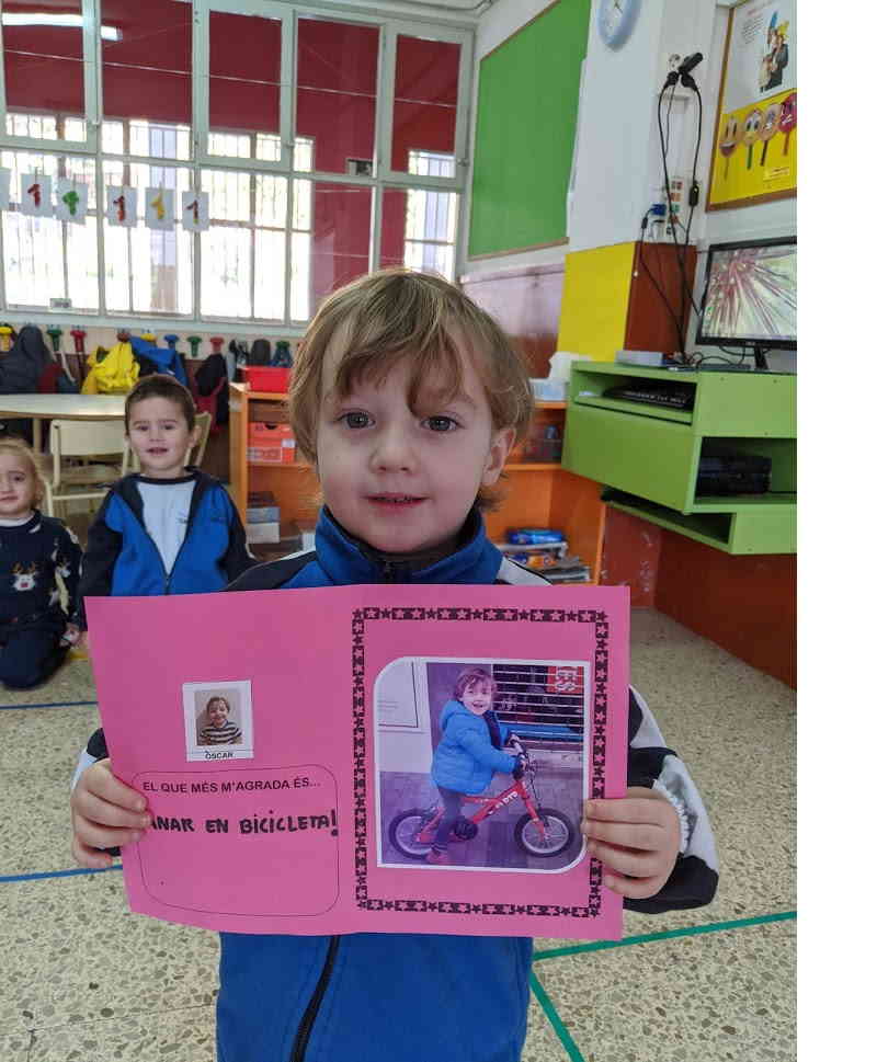 A l’Òscar el que més li agrada és la seva bicicleta vermella amb rodetes. Ens ha explicat que se l’han portat els Reis i que va molt ràpida i que li encanta sortir a passejar amb ella. La foto l’ha fet la mama i l’ha enganxat al paper per ensenyar-nos-la.