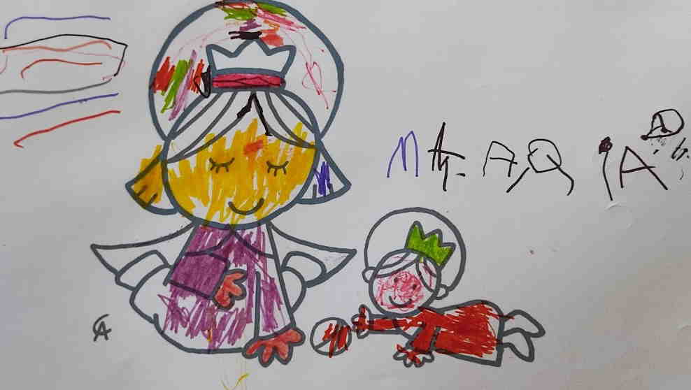 Maria Auxiliadora és la mama de Jesús i com a mama segur que va fer moltes coses amb Jesús igual que estan fent els vostres pares aquests dies. Si voleu pintar el dibuix us deixem un enllaç per poder-vos imprimir-lo.