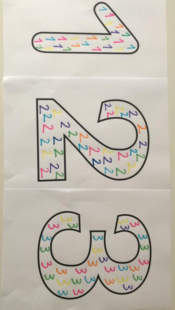 Aquesta setmana treballarem el traç dels nombres. Caldrà imprimir el pdf que us facilitem en aquest article o dibuixar els nombres 1, 2 i 3 grans i buits. Els nens i nenes han d’escriure molts nombres 1 dins el nombre 1, molts nombres 2 dins el nombre 2 i molts nombres 3 dins el nombre 3.