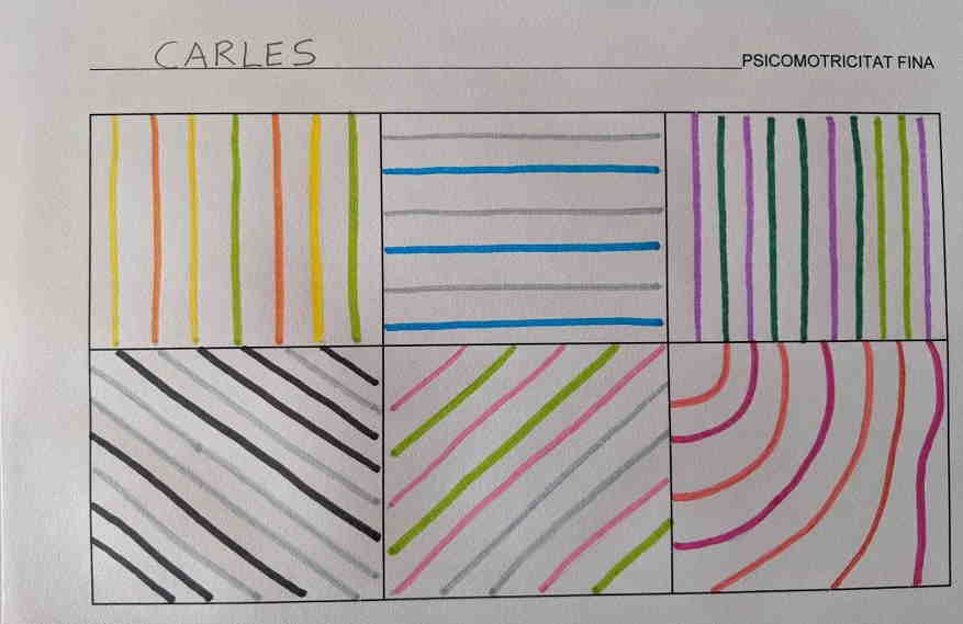 El dimarts treballem la psico fina. Avui l’objectiu és resseguir línies amb retol.lador, les línies que us proposo són molt juntes, cal fer-ho a poc a poc i amb traça. A veure com us surt…