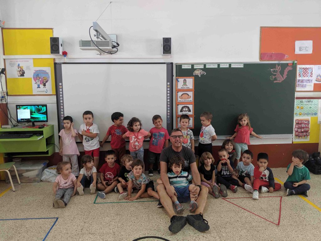 Els nens i nenes de la classe de P3B a la nostra aula amb el Carles, el nostre tutor d’enguany. Segur que aprendrem moltes coses i ho passarem molt bé junts.