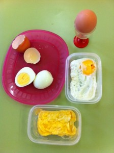 Hem agafat dos pots i dos ous, un l’hem batut i l’altre no, i els hem posat al microones. Ha estat una sorpresa veure que un s’ha convertit en una truita i l’altre en un ou ferrat!