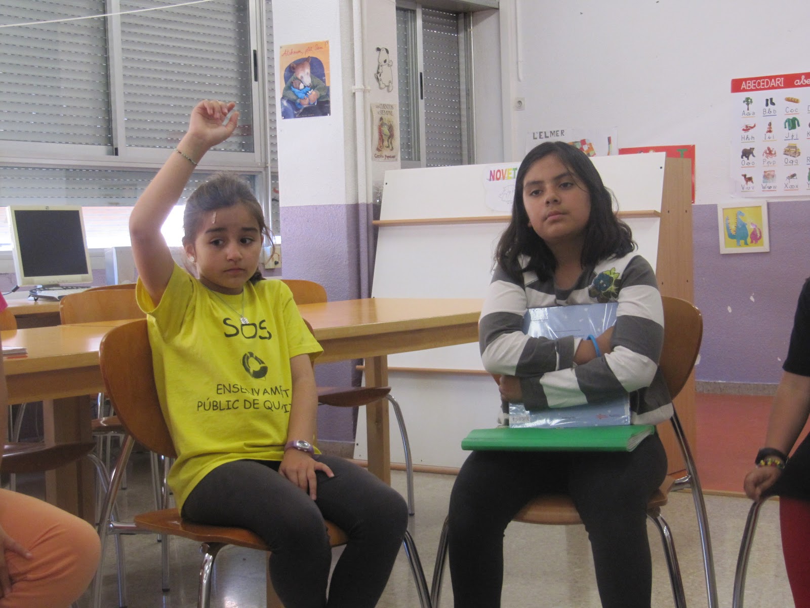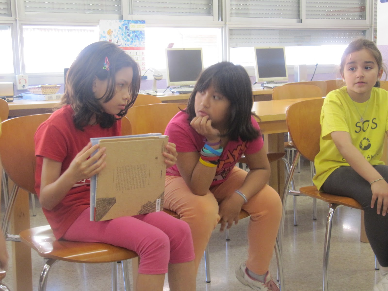 El dimecres 23 de maig va ser un dia molt emocionant. Desprès de l’acte dels Jocs Florals, a la biblioteca ens reuníem el Club de Lectura de migdia, format per un grup d’alumnes de les dues aules de 4t i la Mar de 5è.