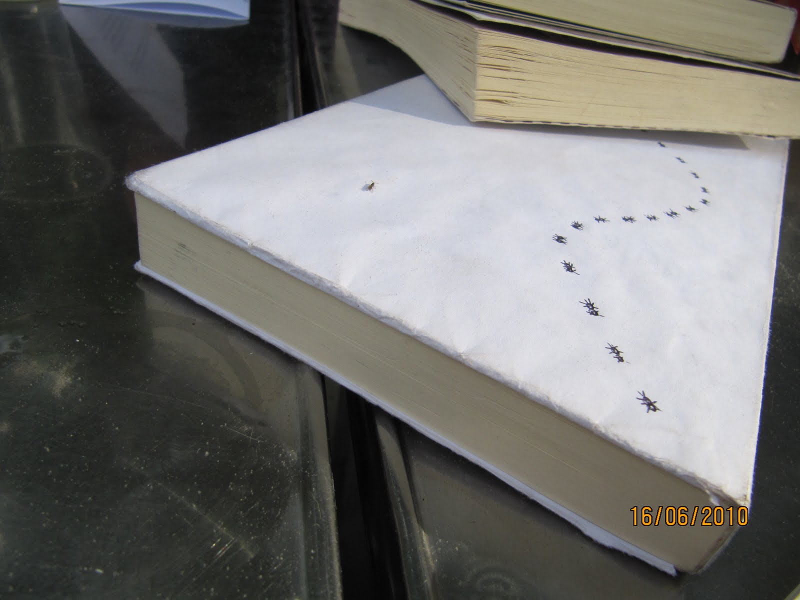 Mentre estaven xerrant el vent ens va dur una petita formiga alada que es va posar damunt el llibre que hi havia a la taula. Vam haver d’acabar doncs tancaven la terrassa del bar, però abans d’acomidar-nos varen preparar una petita llista en llibres possibles per llegir durant l’estiu i de tota la llista vam escollir dos d’obligatoris: