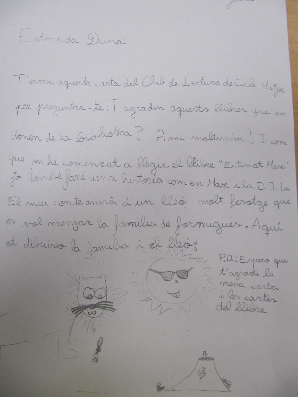 Aquí us deixo la carta de la Gemma a la Duna. Quina sort rebre una carta tan bonica!!!!!