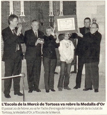 Ja tenim confirmació. Aquest 20 de gener, al migdia, s’ha celebrat una reunió a l’Ajuntament de Tortosa per tancar la data i els detalls de l’acte de lliurament de la Medalla d’Or de la ciutat a la Mercè. Amb la presència de la regidora d’Educació, Rosa Cid, de la direcció de l’escola i de l’associació d’exalumnes (l’AMPA no podia assistir-hi, però han seguit el tema de prop), s’ha concretat que el lliurament de la medalla serà el proper 20 de febrer.