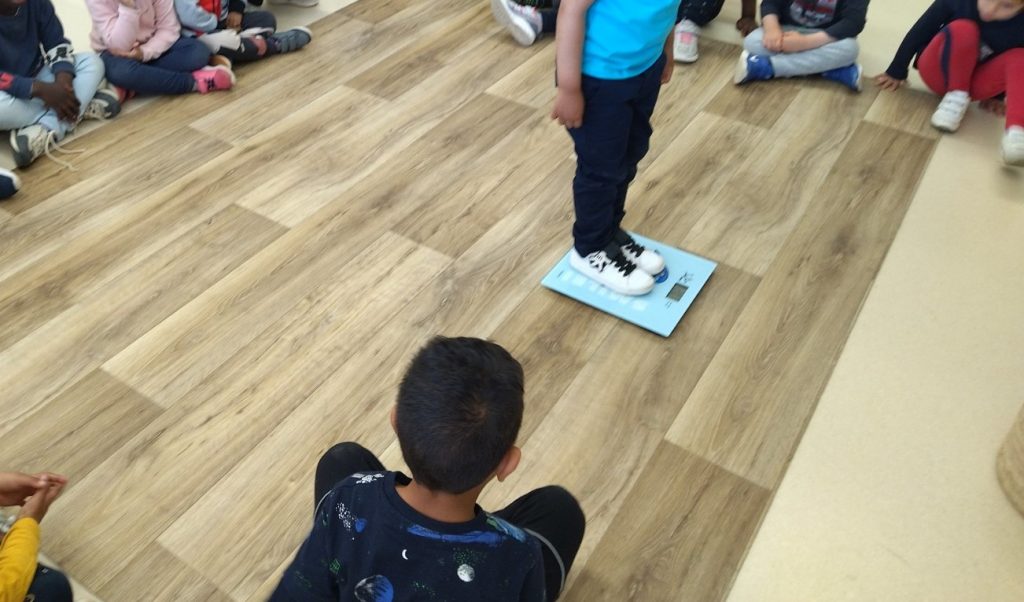 A partir d’una altra pregunta dels infants “qui pesa més l’os o nosaltres?”, decidim pesar-nos i buscar quan pesa l’os per fer la comparació.