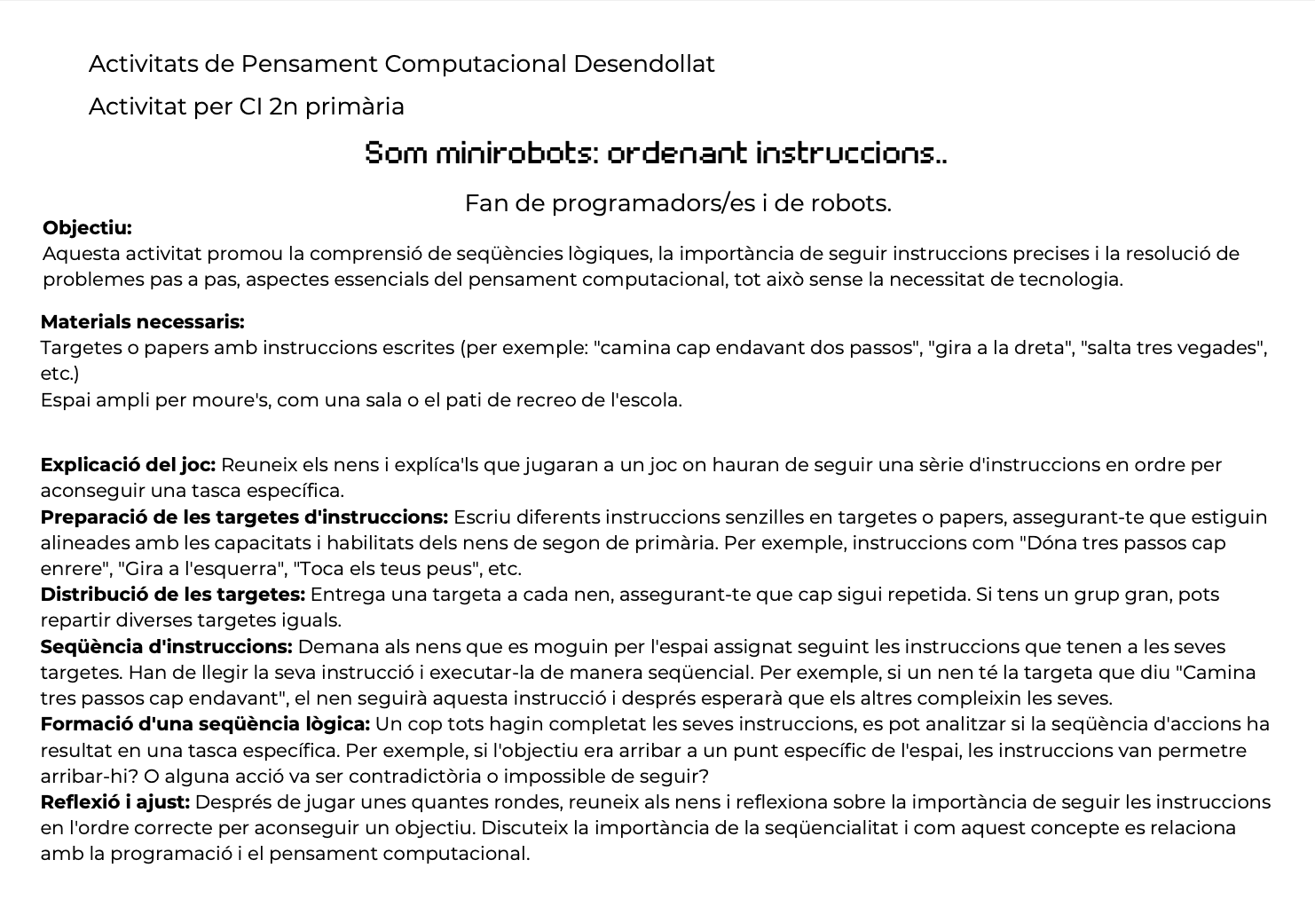Sense utilitzar directament eines tecnològiques, es pot introduir el pensament computacional a una aula de segon de primària de manera innovadora i estimulant. L’objectiu principal és fomentar les…