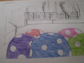 Hen sortit al pati i hem dibuixat l’indret triat, que ens servirà , mitjançant fotocòpies com a suport per realitzar les diferents propostes i idees.