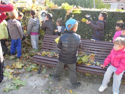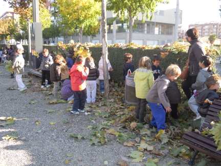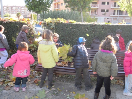 Ara que el paisatge canvia de color aprofitem per sortir. ens arribem al parc de la Transsegre i allí trepitgem i juguem amb les fulles.