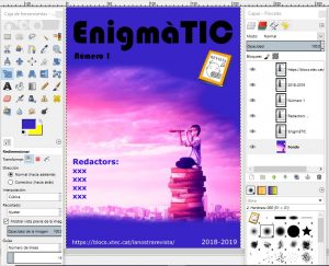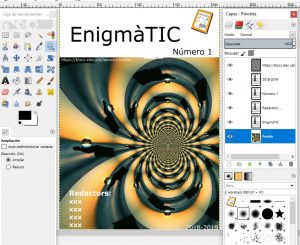 El GIMP l’utilitzarem per parelles. Utilitzarem el programa per col·locar el text, el logo i algun detall més.