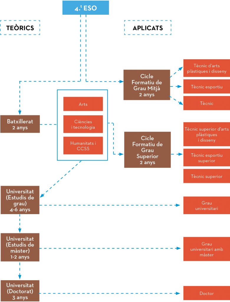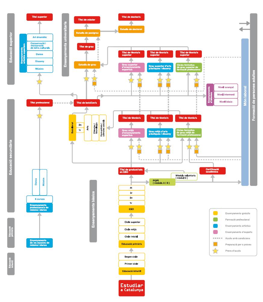 En el mapa del sistema educatiu pots consultar la possibilitat de cursar diferents ensenyaments per arribar a aconseguir els teus objectius professionals. En els diferents apartats del mapa interactiu hi trobaràs tota la informació que necessites per construir el teu itinerari formatiu.