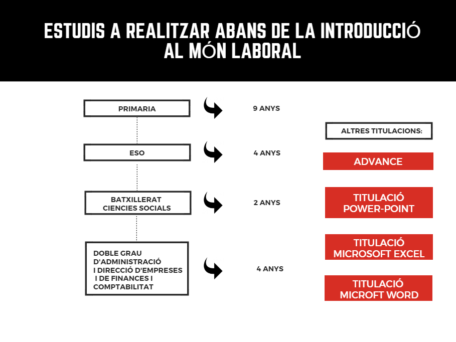 ESO->GRAU MITJA D’ADMINISTRACIO I GESTIO->GRAU SUPERIOR D’ADMINISTRACIO I FINANCES->MON LABORAL
