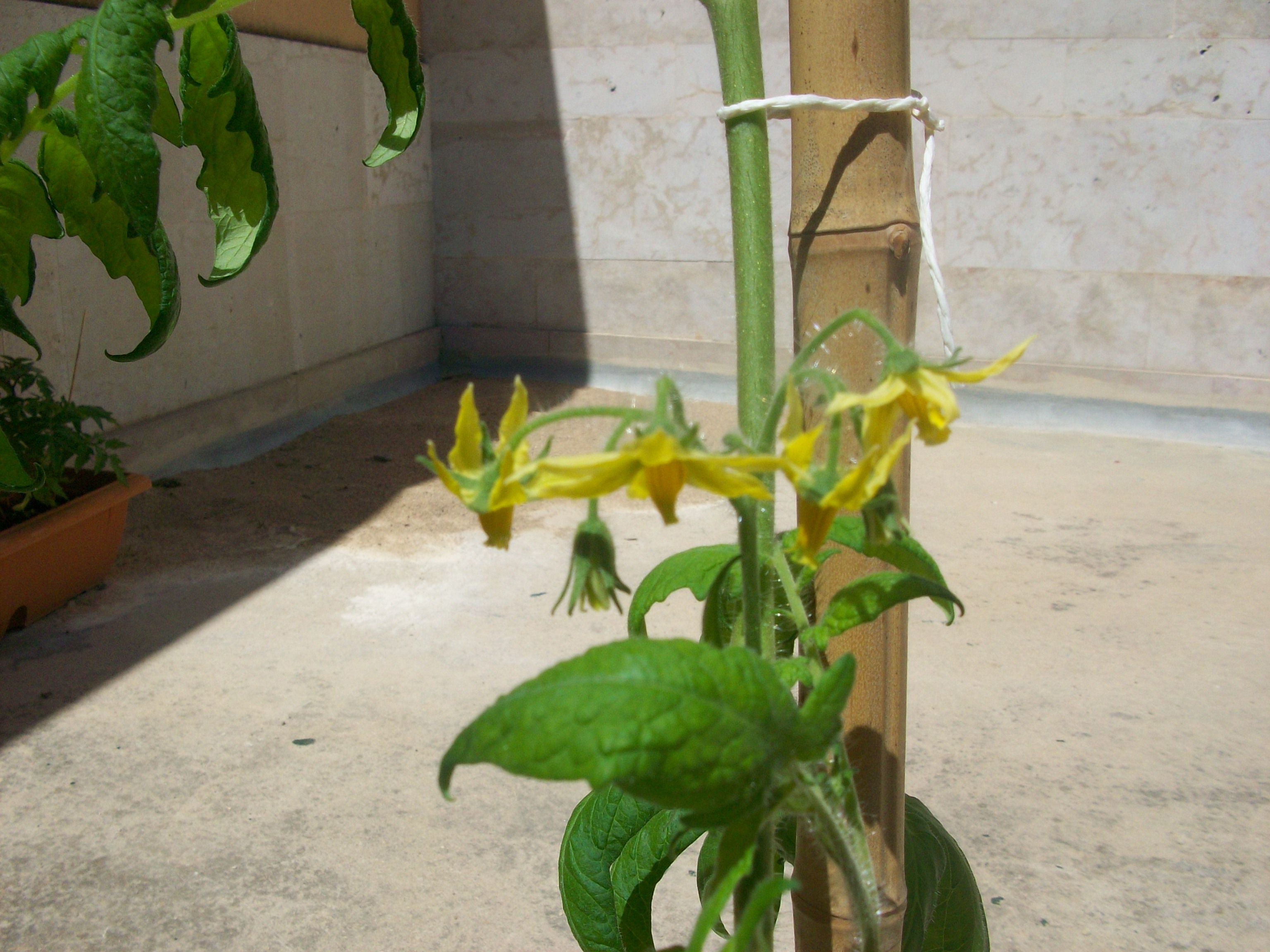 LA TOMAQUERA QUE HEM PLANTAT JA TÉ FLORS. ARA HEM D’ ESPERAR QUE DONI ELS FRUITS.