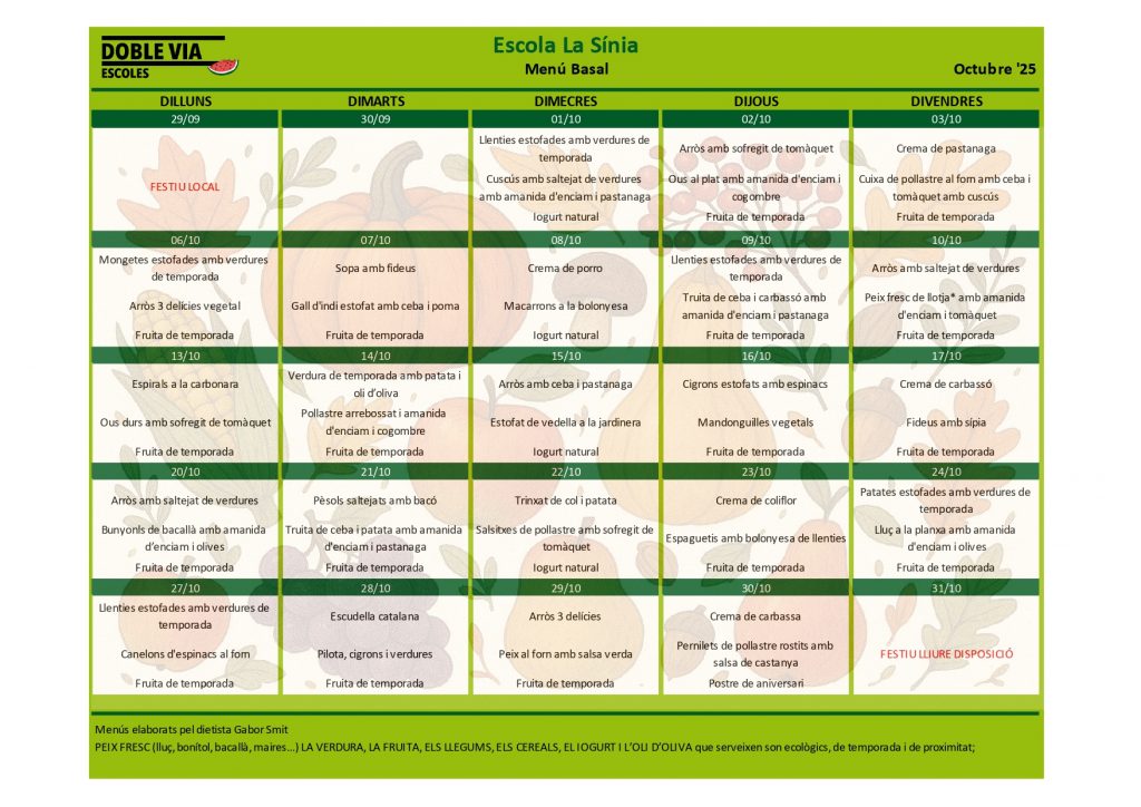 Us adjuntem i us mostrem el Menú Basal d’aquest mes d’octubre de 2025 (cliqueu l’enllaç):