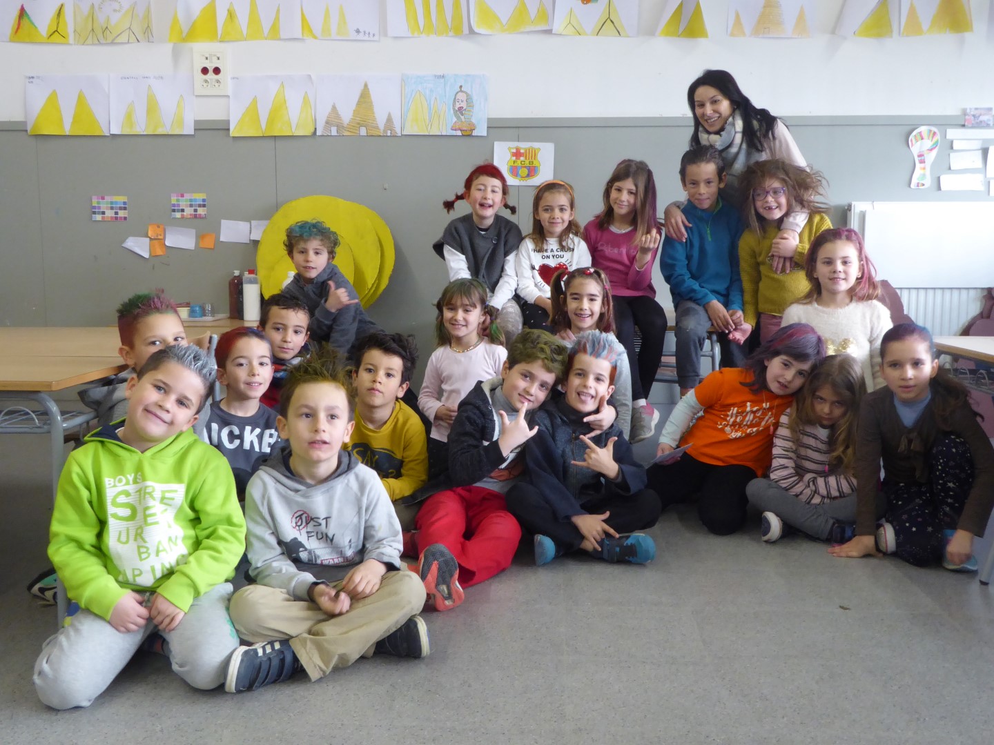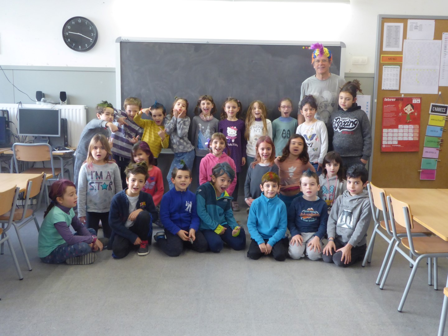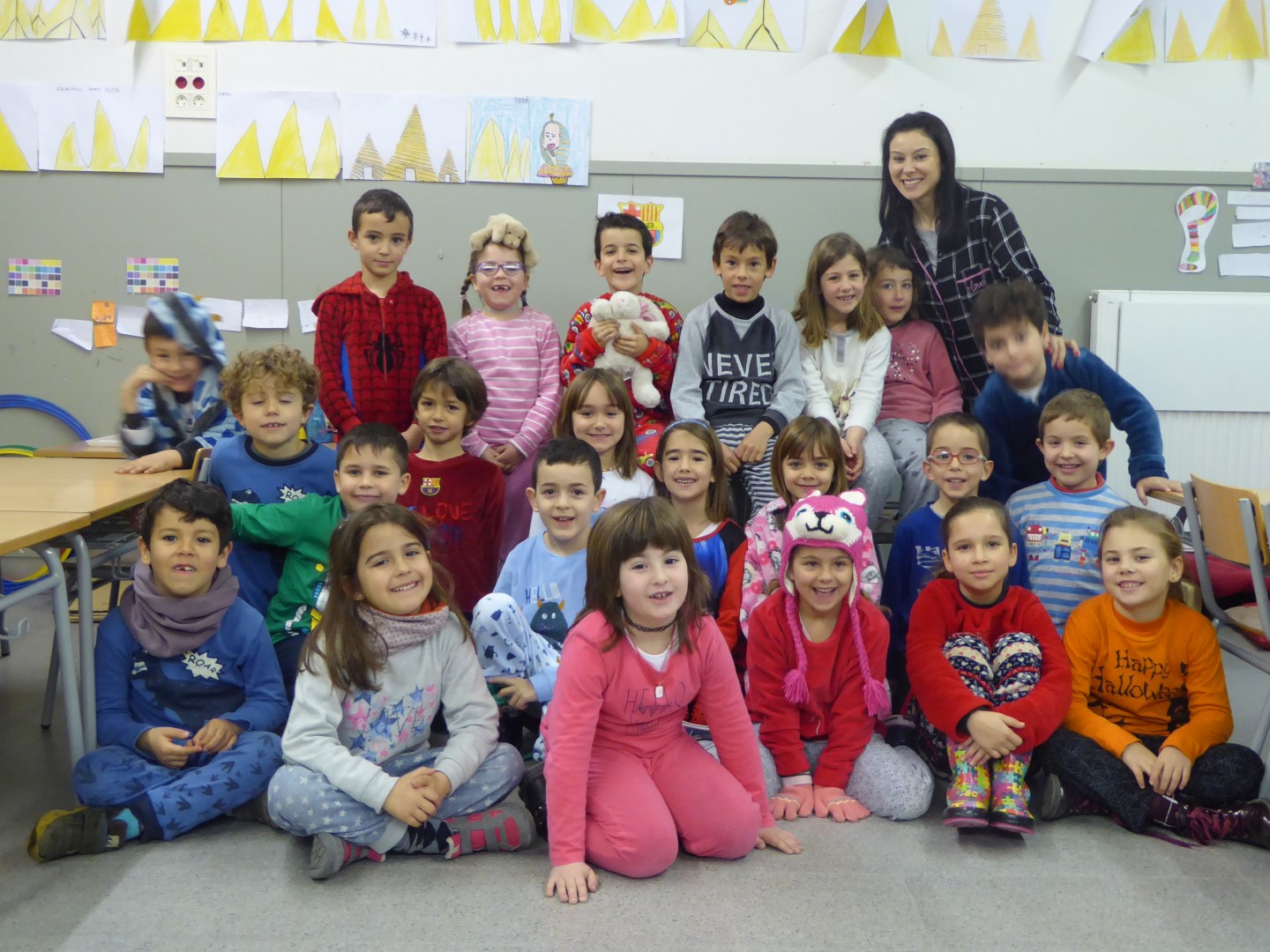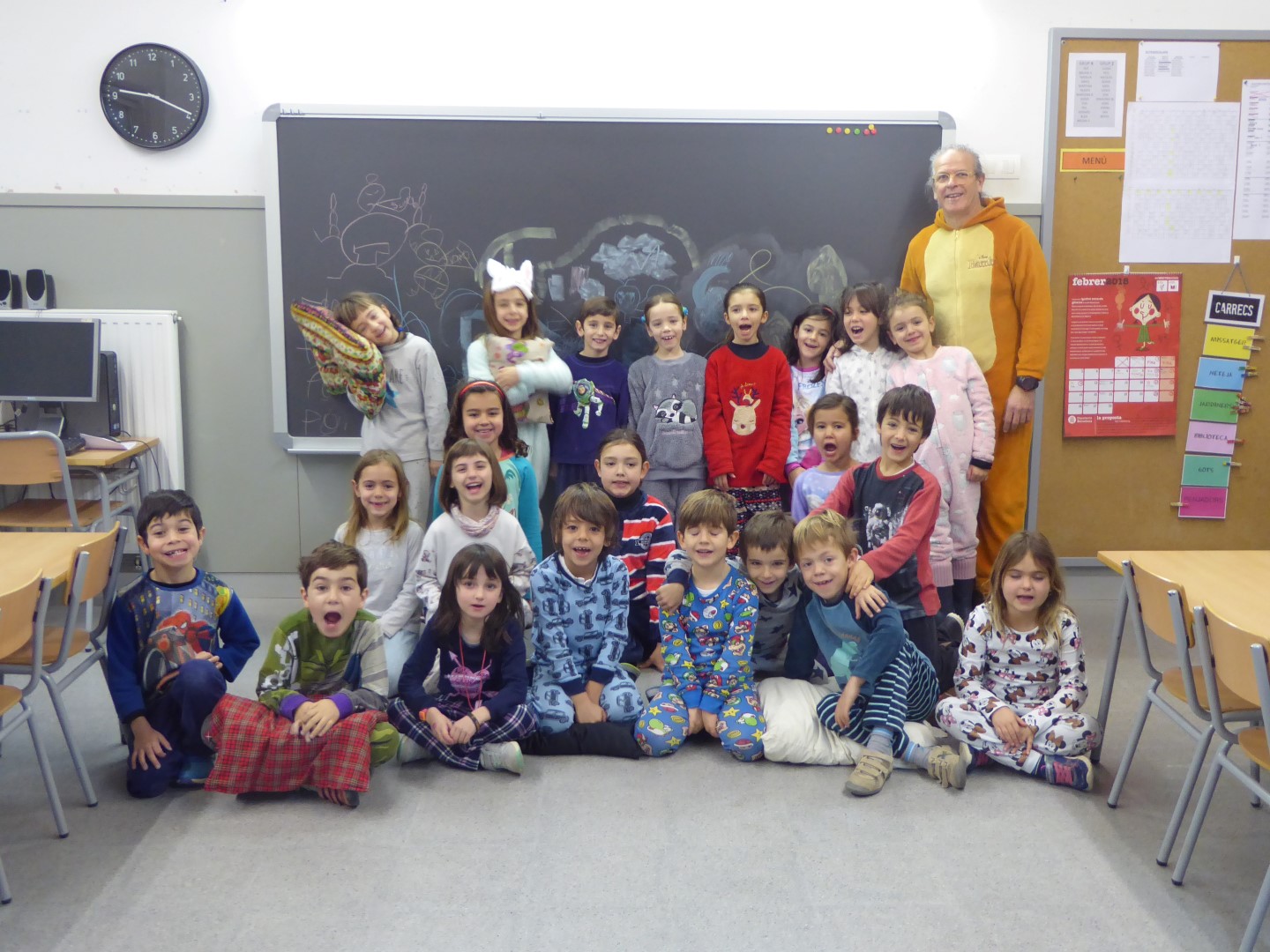 DILLUNS VAM ARRIBAR A L’ESCOLA AMB PIJAMA, VA SER GENIAL. DIMARTS LES NOSTRES CARES EREN MOLT DIVERTIDES, IGUAL QUE DIMECRES ELS NOSTRES PETINATS. L’ÚLTIM DIA PORTAVEM LA ROBA AL REVÉS I ENS VAM FER UN FART DE RIURE!