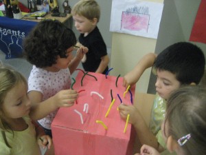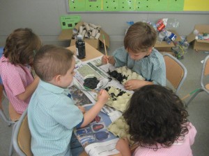Al llarg del dia vam anar recollint materials que trobàvem; pinyes, pedres, cargols, branques… i aquests materials els hem aprofitat a l’aula per fer un treball conjunt. Hem fet un mural utilitzant tots aquests estris que vam trobar (exceptuant els cargols) com a pinzells. Hem gaudit molt fent aquesta producció conjunta!
