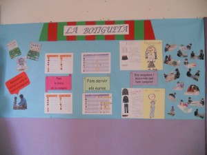La botigueta és un racó que s’ha creat amb la finalitat de ser un espai mòbil i variable que serveixi per vehicular els continguts de les diferents àrees i on els alumnes puguin posar en pràctica tot un seguit de coneixements i habilitats de manera transversal i interactiva. Des d’aquest plantejament les activitats del racó pretenen consolidar els nous aprenentatges, de forma significativa, vivencial i contextualitzada.