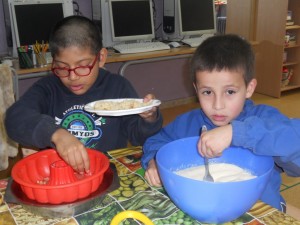 Cada nen agafa 2 talls de pa de motllo. A sobre d’un afegim pernil dolç fins a cobrir-ho i a sobre de l’altre untem sobrassada. Una vegada tenim això afegim a sobre de cada llesca un tall de formatge i un altre de pa de motllo. Ara ja està fet el biquini, només ens queda untar la mantega per les dues bandes per a que no s’enganxi i els posem a la sadwitchera.