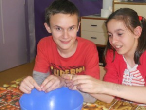 Repartirm la barreja a 4 copes i ho posem a la nevera. Pelem els kiwis i els tallem a rodanxes i/o triangles.