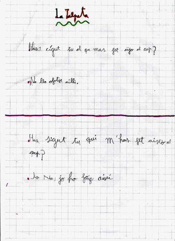 4. Preguntes i respostes: analitzem la pregunta i la resposta que la Talpeta fa a cada animal. Treballem el signe d’interrogació, la majúscula en iniciar el text i el punt final.