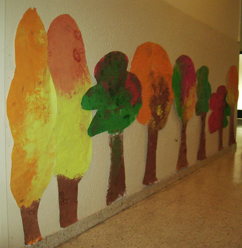 LA TARDOR I HEM PINTAT AQUESTS ARBRES AMB ELS COLORS TÍPICS: GROC, TARONJA, OCRE, ROIG, MARRÓ I VERD.