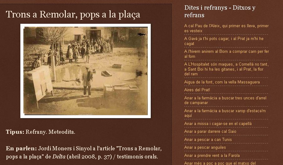 Les frases fetes són un patrimoni inesgotable de la comunicació oral. Al Prat les dites i refranys han estat recollides per Joan Puigmalet al bloc Trons a Remolar