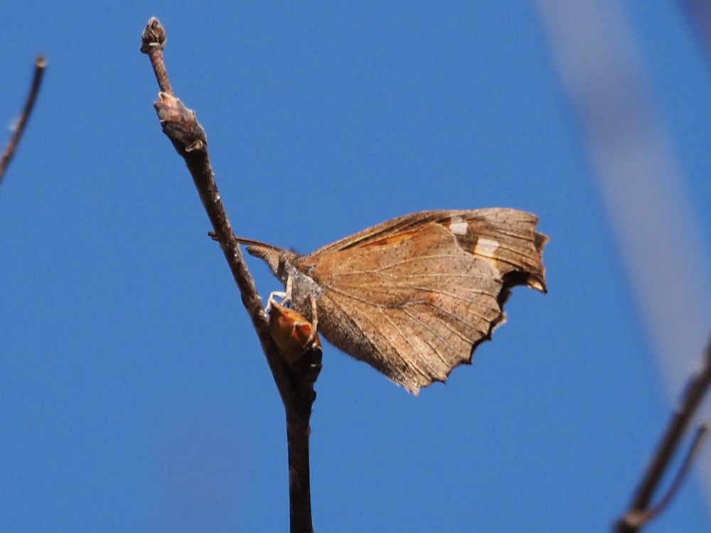 Papallona de fàcil identificació perquè te les ales retallades i el palps allargats, com si tingués nas. Per l’anvers és marronosa amb taques més clares.