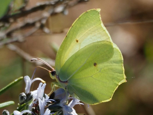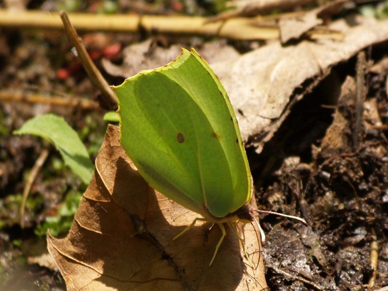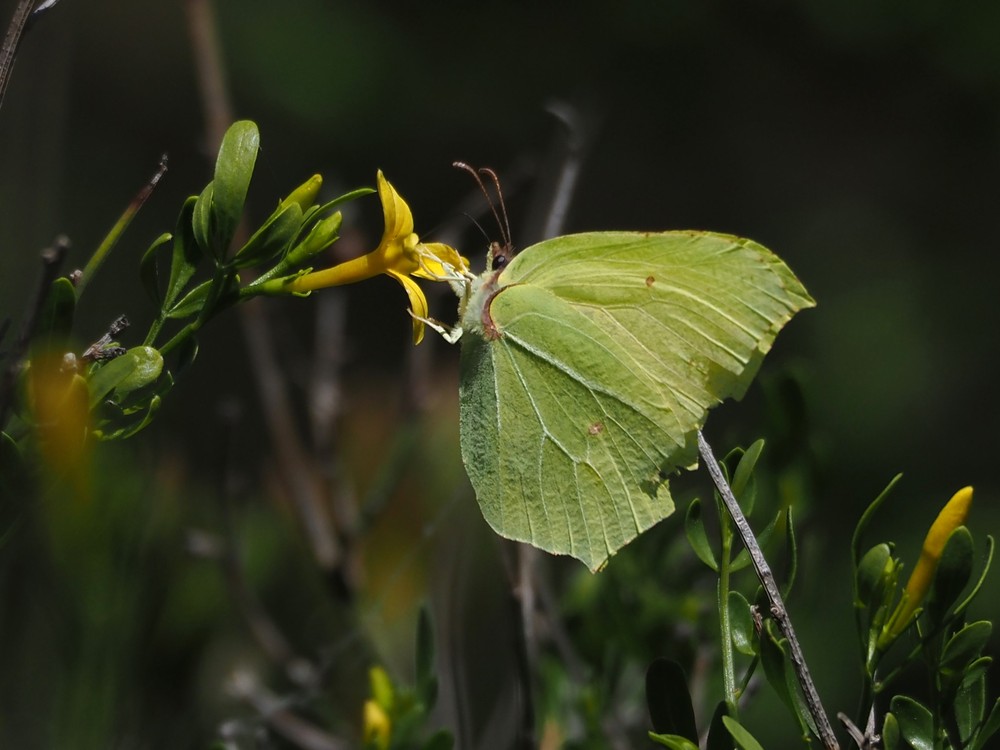 Papallona de mida gran amb diformisme sexual. Els mascles són fàcilment identificables perquè són de color groc a les dues ales. Les femelles són de color blanc verdós, molt semblants a les femelles de la cleòpatra (Gonepteryx cleopatra). Pel revers quan tanca les ales sembla una fulla.