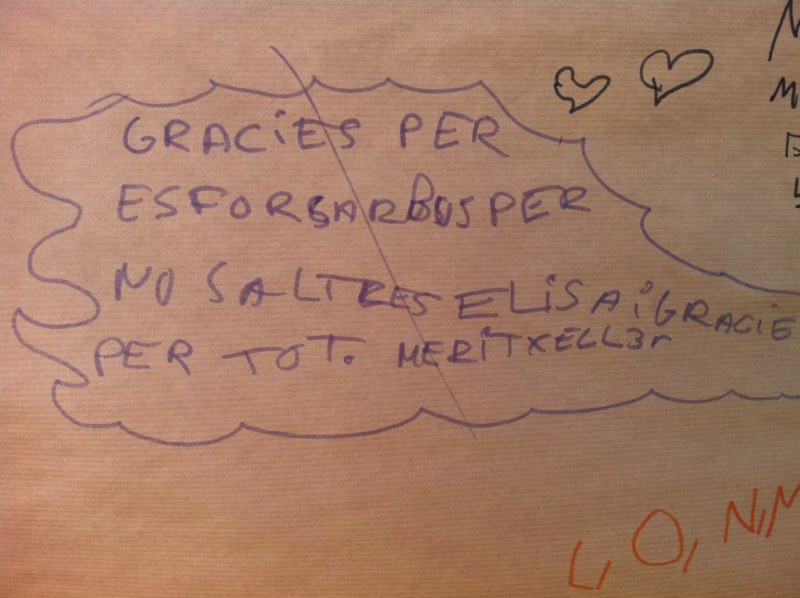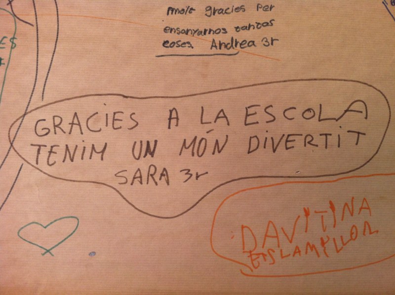 acompanyament!La festa de final de curs va ser tot un èxit. El millor regal que podíem rebre aquella nit van ser les frases que van escriure els nens i les nenes a les parets. Aquí teniu una petita mostra: