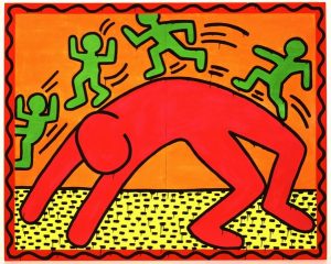 Keith Haring (Reading, Pennsilvània, 4 de maig, 1958 – Nova York, 16 de febrer, 1990) fou un artista plàstic i activista social nord-americà, els treballs del qual responien a la cultura del carrer a la Nova York dels anys 80. Va ser un dels principals dibuixants de graffiti del metro de Nova York i va destacar pels seus personatges formats per siluetes d’emocions. Keith Haring forma part d’una nova generació d’artistes propers al Pop Art.