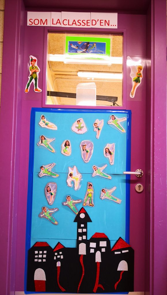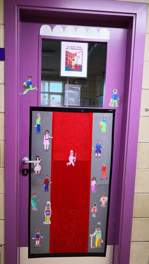 A tercer, els alumnes decideixen el nom d’un conte popular que donarà nom a la seva classe, el treballen i fan un disseny per decorar la porta de la seva aula.