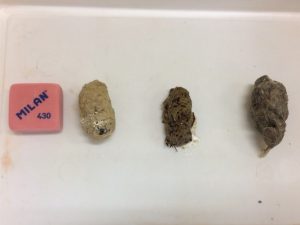 A l’excursió al Cim d’Àligues, vam quedar súper encuriosits amb les EGAGRÒPILES: Resulta que les aus rapinyaires, després de la digestió, treuen una espècie de bola amb tot allò que no han pogut digerir anomenada egagròpila. Així que, abans de marxar, vam demanar si en tenien alguna per emportar-nos-la a l’escola. I sí, ens en van donar alguna.