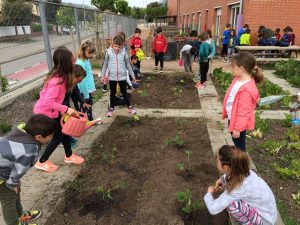 De tornada de l’excursió al Cim d’àligues, hem anat a l’hort a plantar LES MADUIXERES.