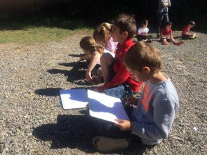 Fem d’artistes: Hem triat un lloc on seure i hem observat el nostre entorn per escollir allò que dibuixaríem amb llapis. Un cop acabat el dibuix hi hem fet les ombres i ens ha quedat xulíssim.