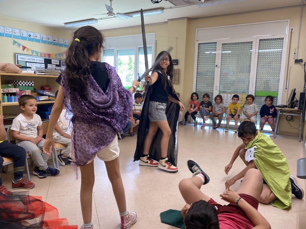 Aquest curs per Sant Jordi hem preparat unes obres de teatre en equips pels nens i nenes d’educació infantil. Cada grup ha fet la seva pròpia llegenda invertint els rols  o trencant estereotips de la llegenda real.