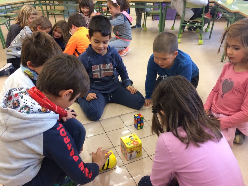 Primer cadascú sol i després en grup hem fet desplaçar el bee-bot per sobre d’un tapís seguint un recorregut pensat: 2 endavant – gir a la dreta – 3 enrera, ….