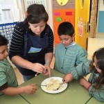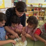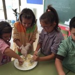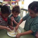 El dimecres al matí, vam fer la massa dels panellets amb els mestres. L’endemà vam elaborar les boles i les vam decorar amb pinyons, ametlles, coco, cacau, cireres confitades, codonyat i fideus de xocolata. Al migdia, els alumnes de cicle superior vam portar-los al forn del poble per coure’ls.