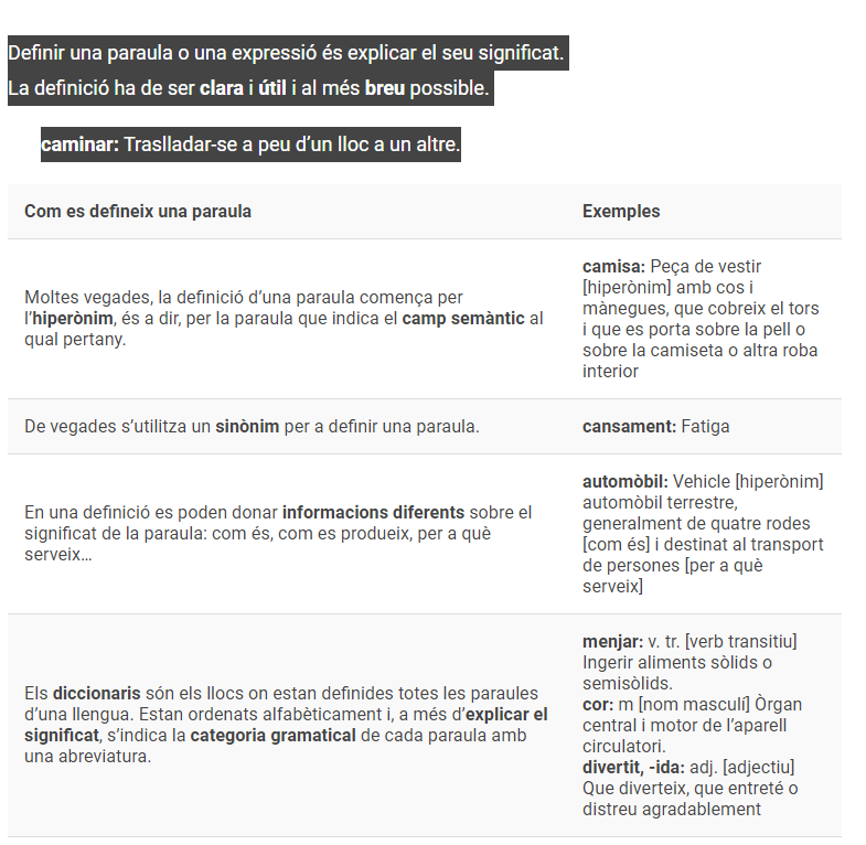 - Treballar les definicions i el text instructiu. (Joc de les definicions)