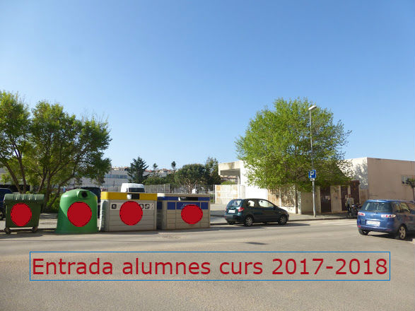 – 2 fotografies (1 a i 2 a) de l’accés de l’alumnat de l’Ins S’Agulla el curs passat.