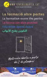 A continuació t’informem de l’oferta formativa pública i de qualitat del nostre centre. Pots venir o trucar durant tot el mes de juny a demanar més informació i a realitzar la teva preinscripció.