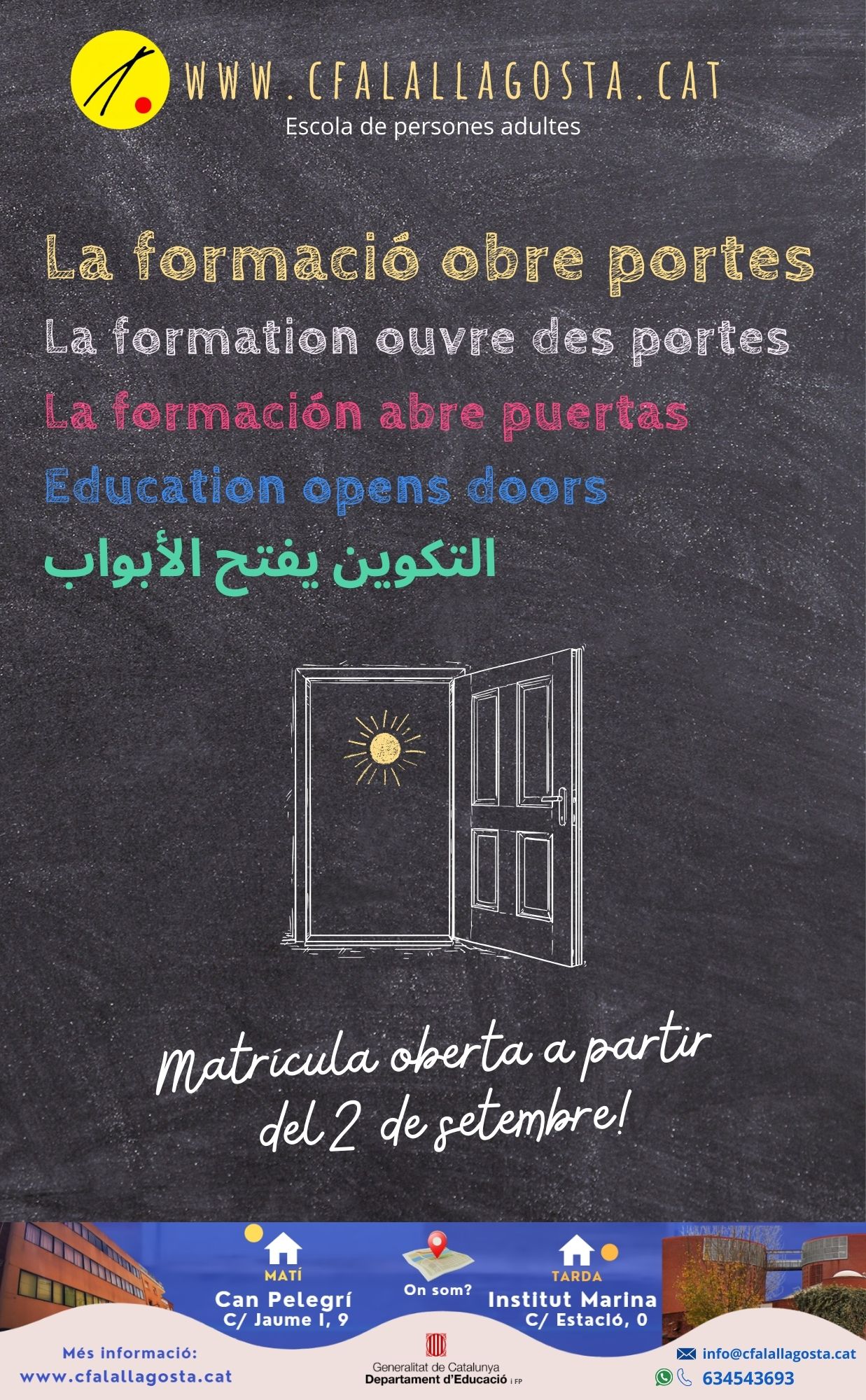 0Tens un munt de cursos i horaris a la teva disposició. Comencen el proper mes setembre i duren fins a juny de 2026.