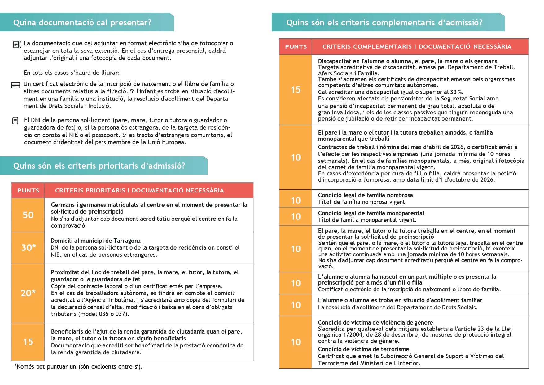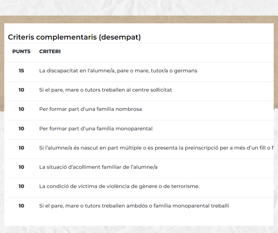 -Al·legar punts per criteris prioritaris o/i per criteris complementaris.